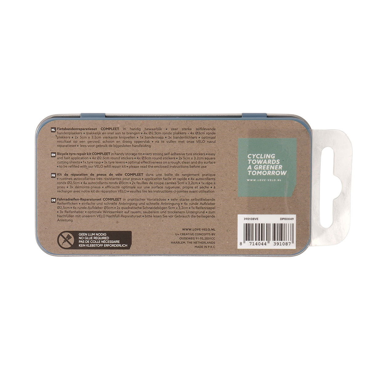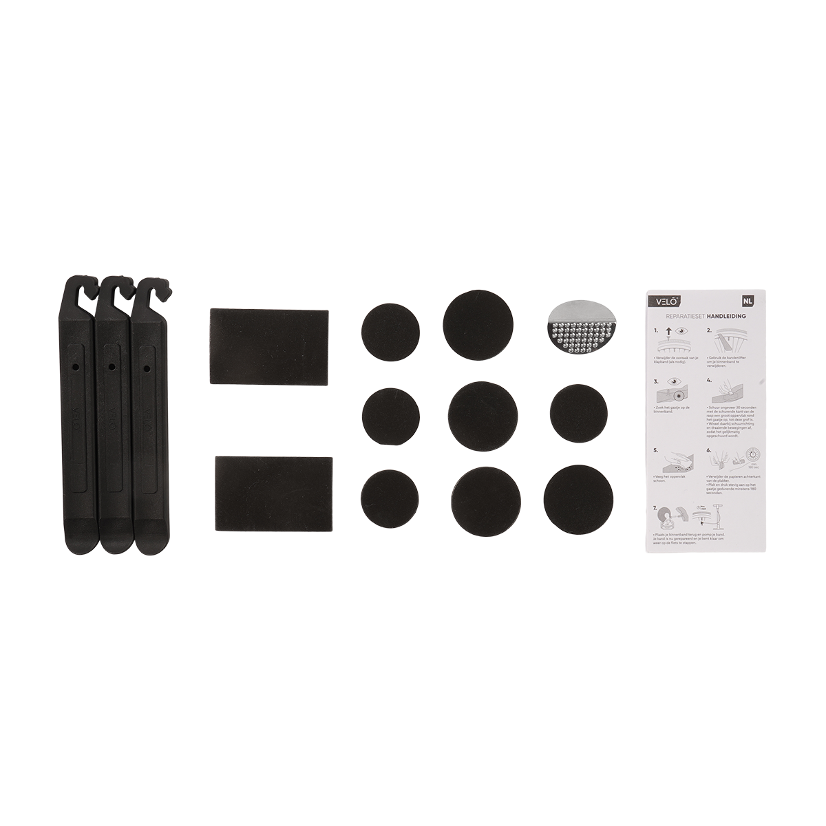 En vergeet niet dat je de set gemakkelijk kunt navullen met onze VELŌ navul reparatieset. Lees voor gebruik de bijgesloten handleiding en geniet van zorgeloze fietsritten, keer op keer.