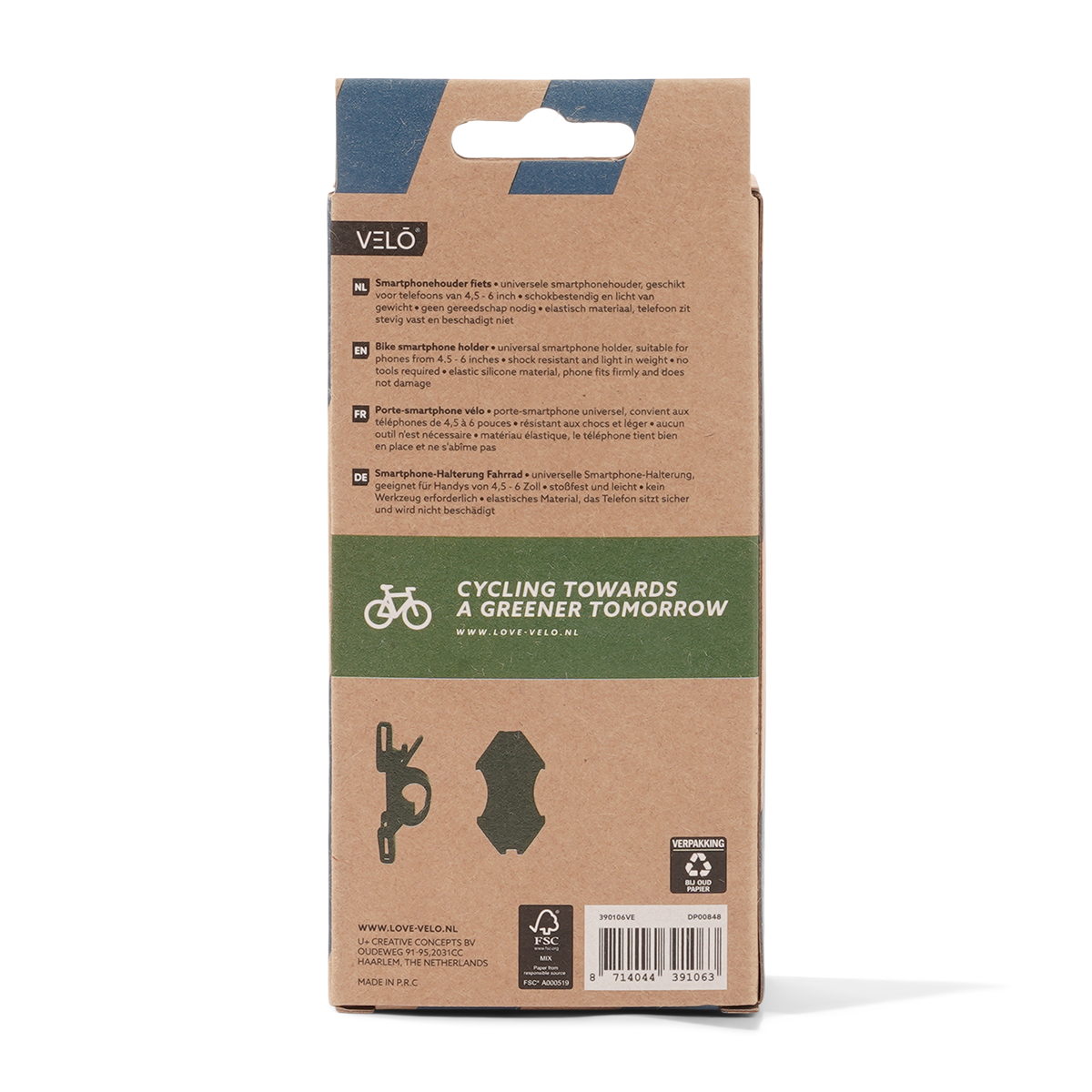 Handig en praktisch, je hebt geen gereedschap nodig om de houder te monteren. Het elastische materiaal zorgt ervoor dat je telefoon altijd stevig vastzit. Met VELŌ fiets je zorgeloos en duurzaam door elke omgeving, terwijl je verbonden blijft met de wereld.
