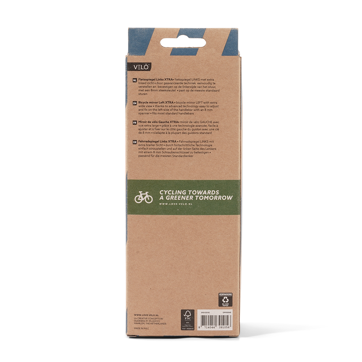 Voor de bewuste fietser die veiligheid en comfort zoekt, is de VELŌ Fietsspiegel Xtra de ideale metgezel. Deze fietsspiegel biedt een extra breed zicht zodat je altijd op de hoogte bent van wat er achter je gebeurt. Dankzij de geavanceerde techniek is de spiegel eenvoudig te verstellen en te bevestigen aan de linkerzijde van je stuur met slechts een 8mm steeksleutel.