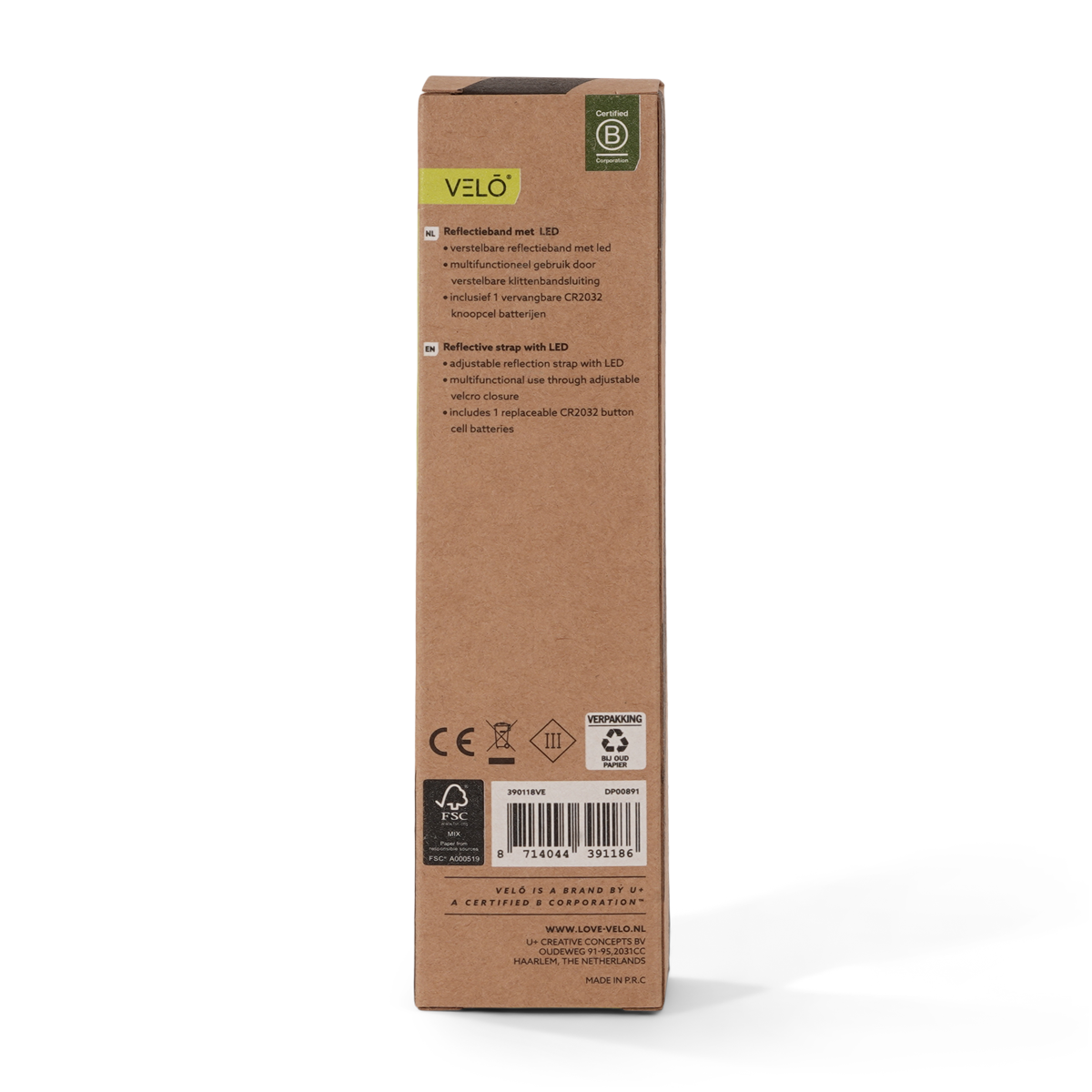 De meegeleverde vervangbare CR2032 knoopcel batterij zorgt ervoor dat je altijd goed verlicht op pad kunt. Met de VELŌ LED Reflectieband ben je nooit meer onzichtbaar in het donker!