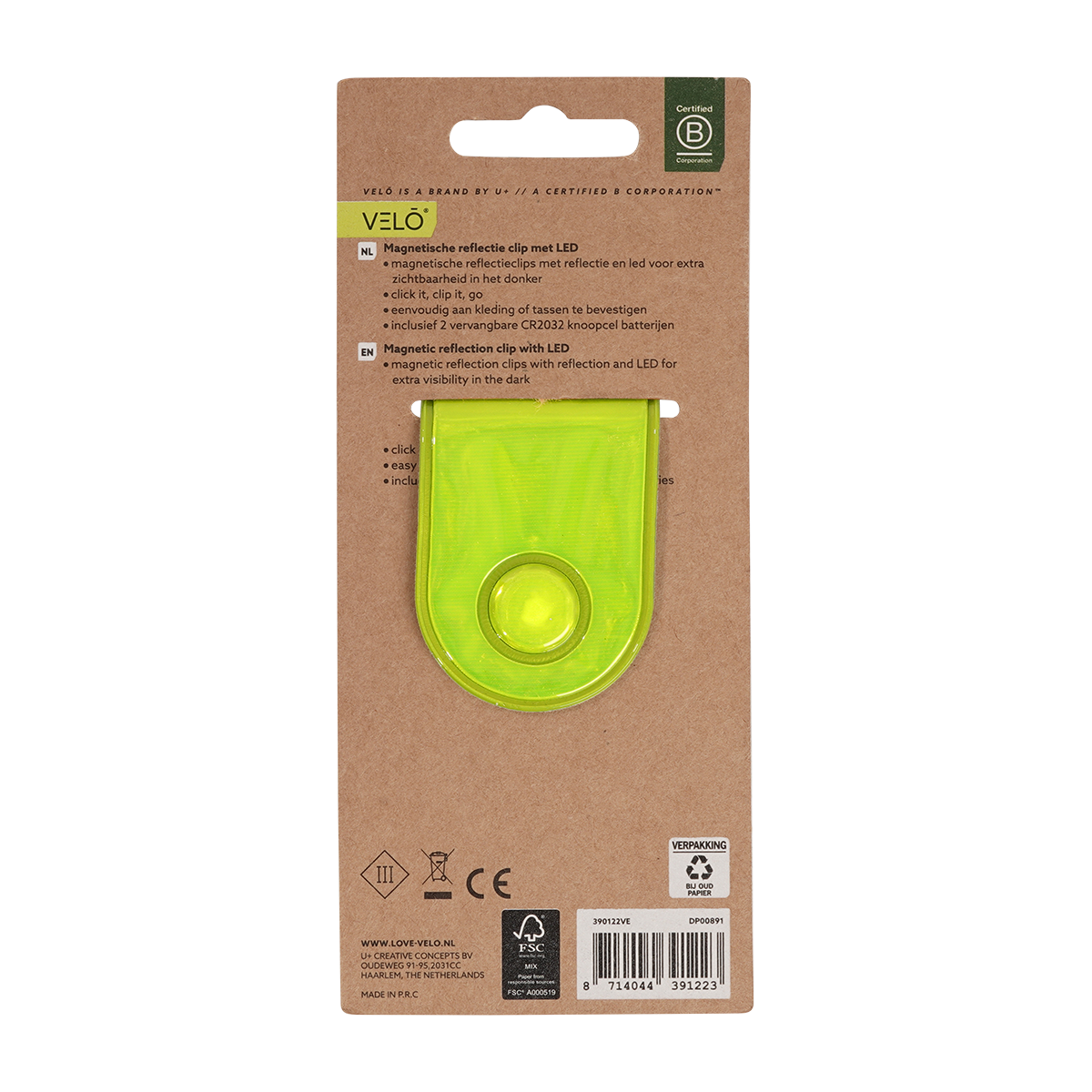 Dankzij de krachtige reflectie en ingebouwde LED ben je verzekerd van extra zichtbaarheid, zelfs op de donkerste wegen. En maak je geen zorgen over energie, want met de meegeleverde vervangbare CR2032 knoopcelbatterijen kun je langdurig genieten van dit handige accessoire.