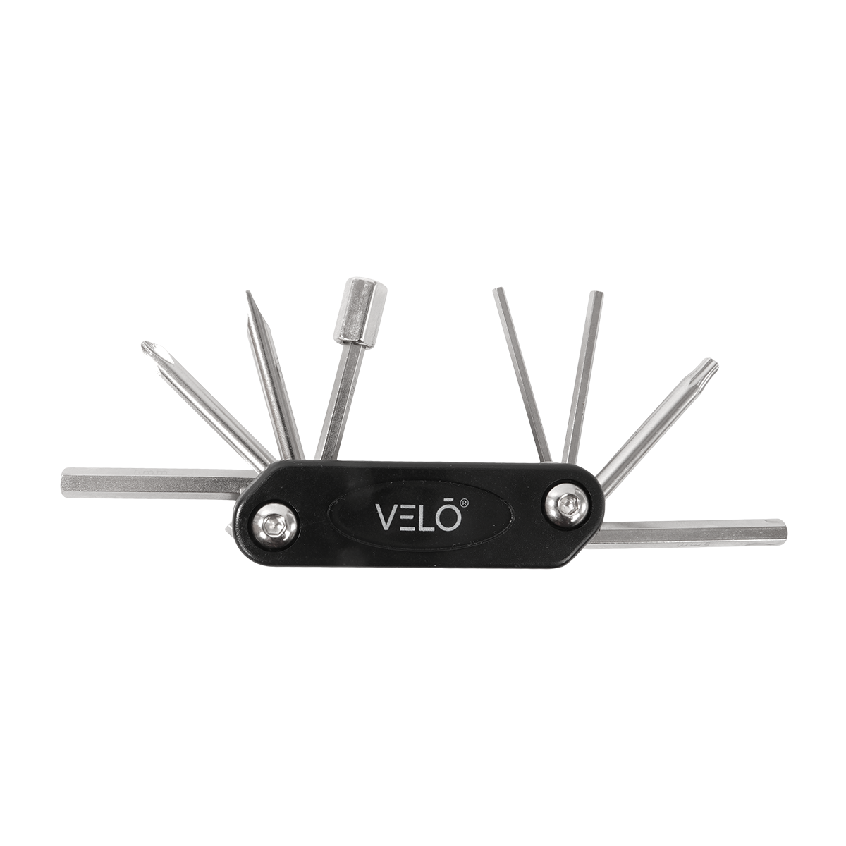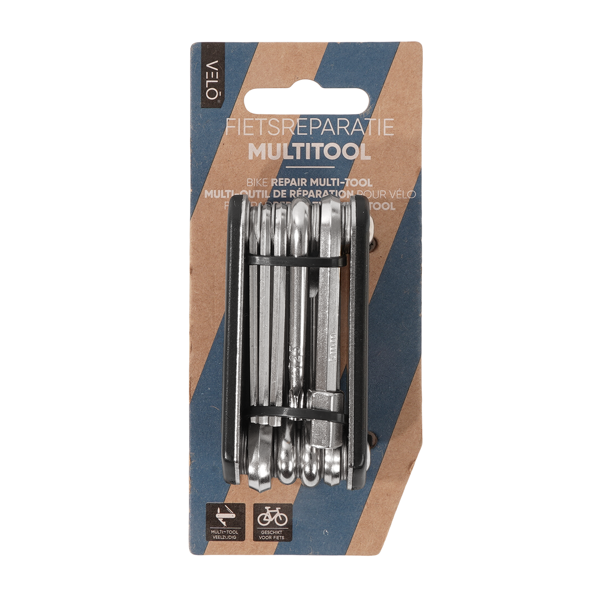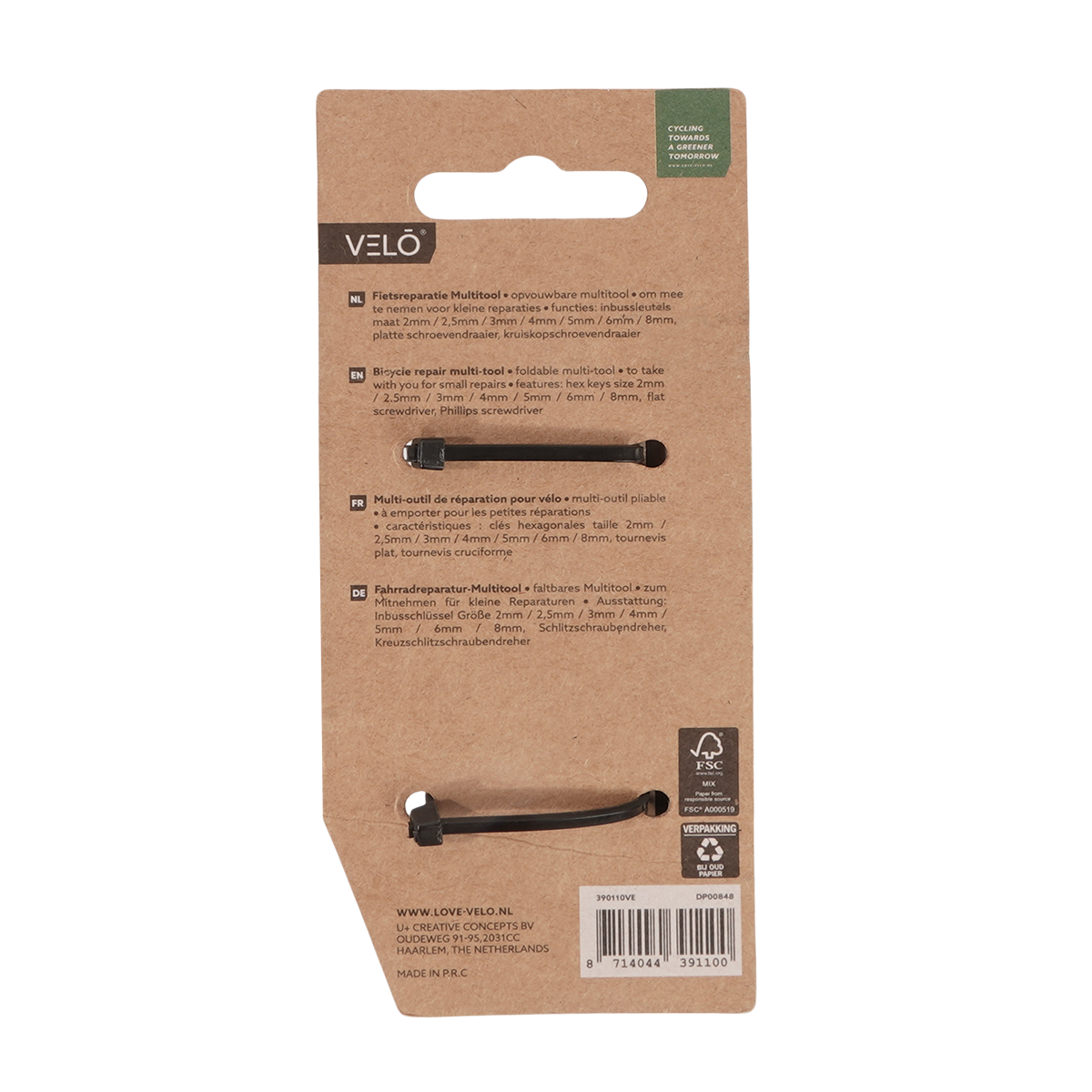 Fietsreparaties onderweg waren nog nooit zo eenvoudig met de VELŌ Multitool fiets 10 in 1. Stel je voor dat je moeiteloos kleine reparaties uitvoert, waar je ook bent. Dit compacte en opvouwbare gereedschap past perfect in je zak of fietstas, altijd klaar om je te helpen bij elke onverwachte situatie. Of het nu gaat om het aandraaien van een losse bout met een van de inbussleutels (2/2,5/3/4/5/6/8mm) of het vastzetten van een schroef met de platte of kruiskopschroevendraaier, de VELŌ Multitool heeft alles wat je nodig hebt.