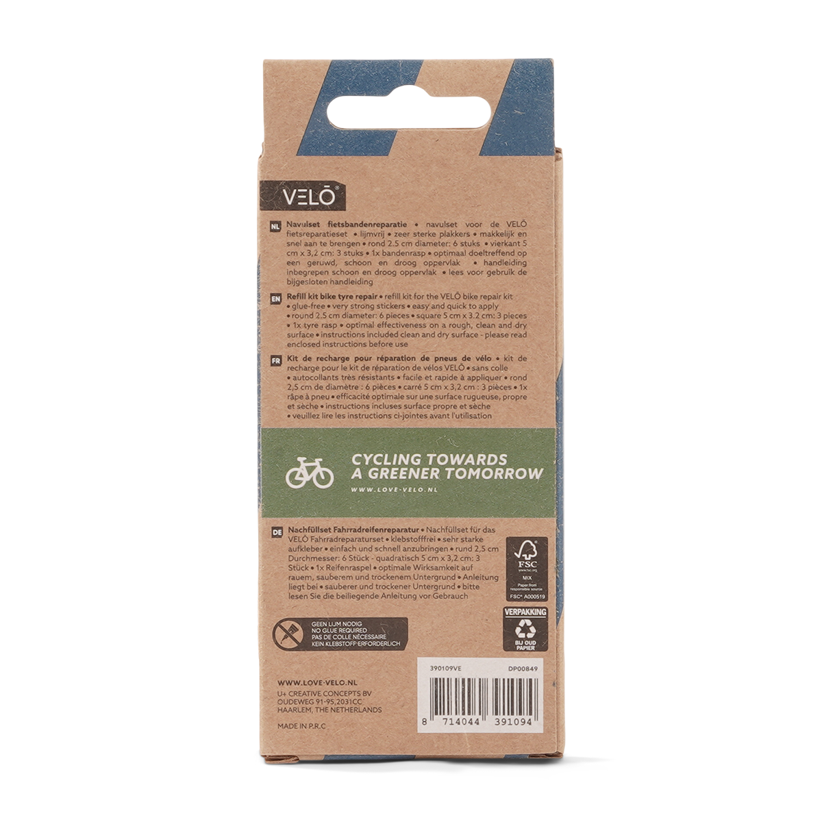 Zie je je fietstocht al in het water vallen door een lekke band? Met de VELŌ Navul bandenreparatieset hoef je je daar geen zorgen meer over te maken. Deze navulset is speciaal ontworpen als toevoeging op de VELŌ fietsreparatieset en biedt een snelle, eenvoudige oplossing zonder gedoe met lijm.
